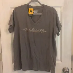 Relaxed fit lightweight short-sleeve V-neck tee by Carhartt with graphic. Soft and durable fabric. Ideal for everyday wear.