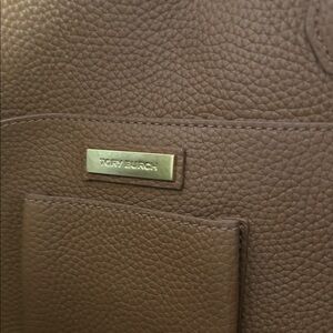 Chic Tory Burch tote in rich brown leather. Sleek design with iconic logo detail. Ideal for everyday use. Dust Bag included.
