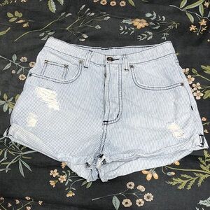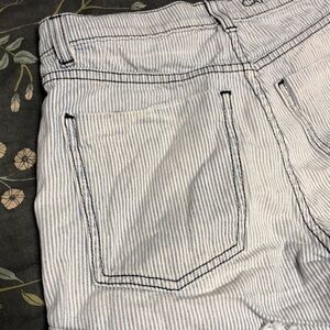 Carmar Striped Mid-Rise 100% Cotton Denim Distressed Jean Shorts Blue and White