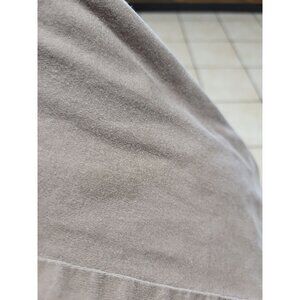 Cocoa brown pants by Coldwater Creek are made of a cotton/spandex blend. Pants feature a flat front, wide leg, mid rise, Button tab front, and pockets. Pants are in good shape but do have some wash wear and also a spot on left leg as shown in last picture.