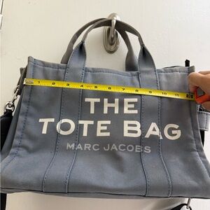 Chic blue denim canvas (medium size) tote bag by Marc Jacobs, Good Condition with slightly blurred color. Ideal for daily essentials. Features sturdy handles and a detachable strap. Fit for mini laptop or ipad.