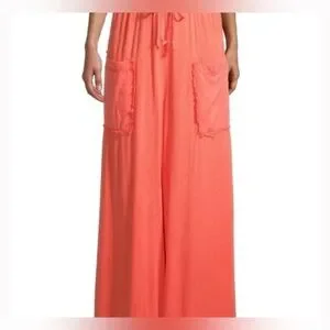 Easy breezy wide leg pants. Peachy coral color in a gauzy