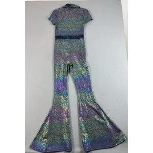 Spirithoods Iridescent Snakeskin Flare Jumpsuit Short Sleeve Collared Medium 1pc