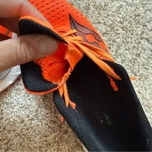 Ran over 350mi in these shoes! Would still be great for walking or casual wear. You’ll notice some average wear on the soles of the shoes as well as the outsole. Please note when purchasing: I have cut the strap that connected the tongue to the shoe.