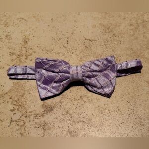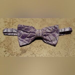 Youth Handmade Pre-tied Banded Adjustable Bow Tie In Lavender Plaid Jacquard Satin Brocade.
