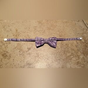 Elevate your style with this classic plaid purple lavender adjustable bow tie. Pre-tied banded bow ties are always knotted and ready - no tying ever, takes a second to put on.
