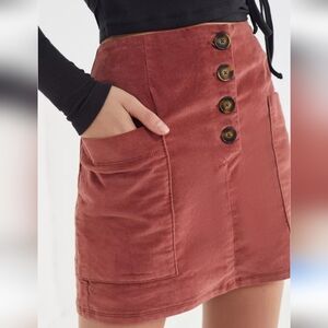 BDG Pink Velvet Button Front Mini Skirt