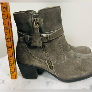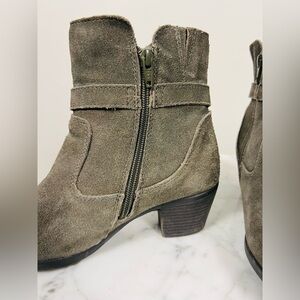 Meet your new favorite fall boots—these Earth Origins “Tori” short boots in a versatile dark olive leather. Designed with a 2” heel, 7.5” shaft height, and stylish details like a decorative outer buckle and zipper, plus a functional inner zipper for easy on and off.