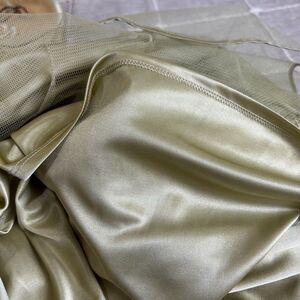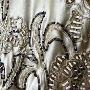 Full skirt bottom with multiple layers and beaded portions tucked in the folds of the skirt