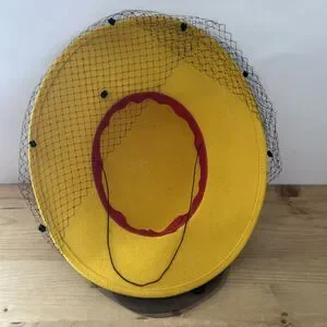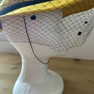 Vtg Fashion Hat WPL 4384 Yellow Wool Felt w Black Mesh w Polka Dots 53 cm