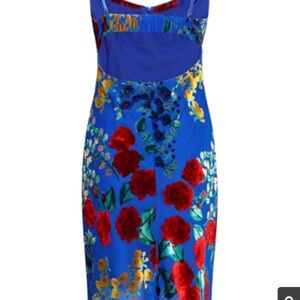 Embrace elegance with this stunning floral blue midi dress. Perfect for any occasion, this dress features vibrant velvet floral patterns that add a touch of sophistication to your wardrobe.