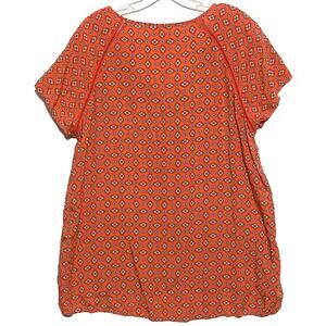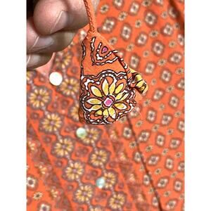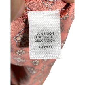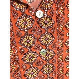 J Jill Floral Button Blouse Orange Top L Hippie Boho Peasant Lagenlook Tassel