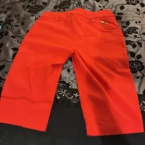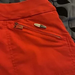 Beautiful vibrant coral orange golf capris by Jamie Saddock
