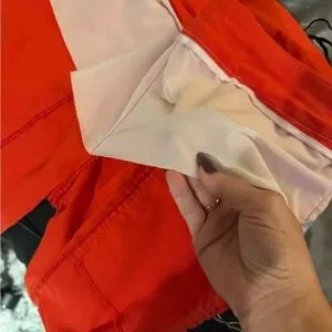 Stylish & comfortable women's red cargo shorts with Jaime Saddock’s fun & creative designs.