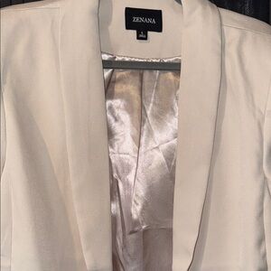 Elegant blazer by Zenana. Light tan color. Ideal for any occasion. Boyfriend fit. Shoulder pads. In excellent condition.