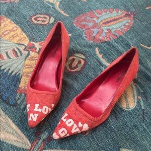 Vintage 90s Y2K Faryl Robin red LOVE T shirt material kitten heels 8