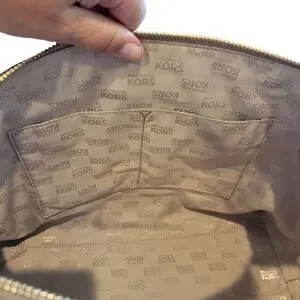 This is the Michael Kors Gilmore Satchel with a removable crossbody strap. This is a putty color - kind of a light taupe.