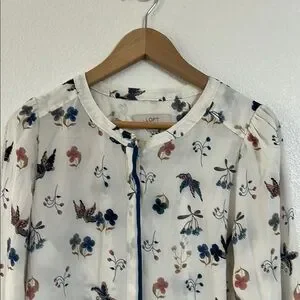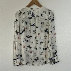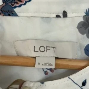 Chic LOFT blouse with a cream base. Features vibrant floral patterns. Perfect for versatile styling.