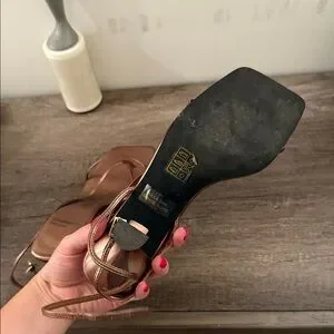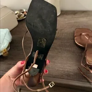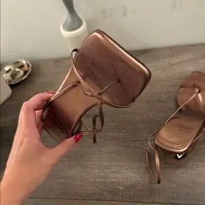 Elegant metallic heels with sleek straps. Perfect for stylish events. Worn once for an event and don’t work with my wardrobe