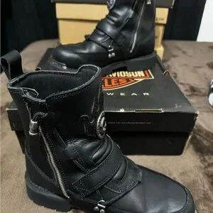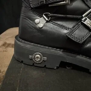 Uppers made from full grain leather featuring H-D Skull Badging with front cross straps with buckles