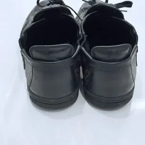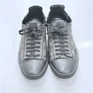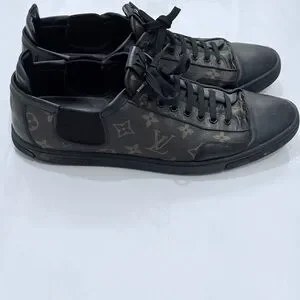 Elevate your look with these Louis Vuitton sneakers. Iconic monogram design. Stylish black and brown tones.