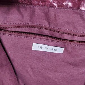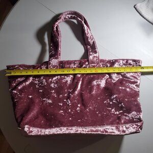 Tabitha Webb Pink Crushed velvet lined tote -has firm base - inside has side zip pocket and other side has 2 open pockets - weighs 1lb 3ozs - has middle magnetic closure - great for travel since it folds flat - clean lining