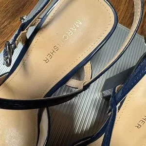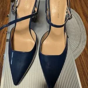 Chic dark blue heels with a sleek pointed toe. Adjustable ankle strap for a secure fit. Perfect for elevating any outfit.