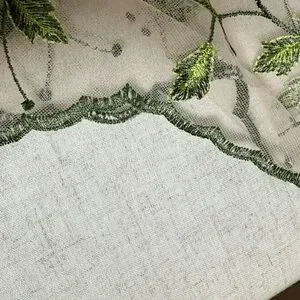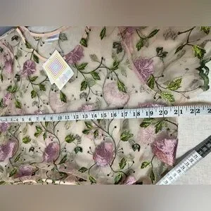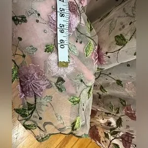 - Embroidered pink and green flowers