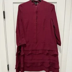 NWT COS Burgundy Long Sleeve Tiered Ruffle Dress sz 4