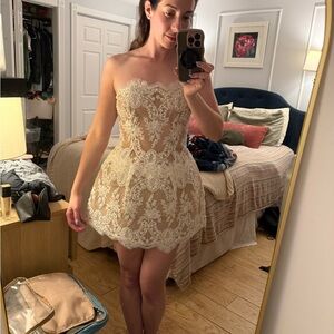 Bronx and Banco Ivory Lace Strapless Mini Dress