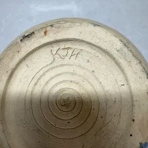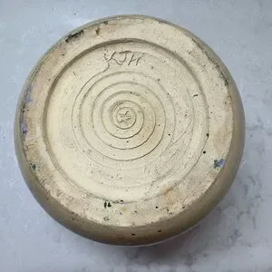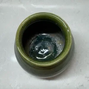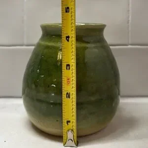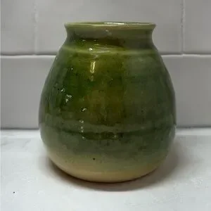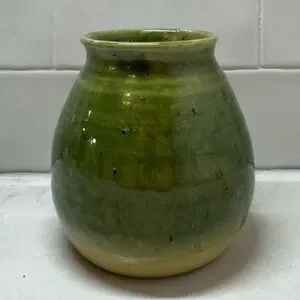 Earthy green ceramic vase perfect for adding a touch of nature to your home decor. Initialed by artist. Some signs of use. Please see photos.