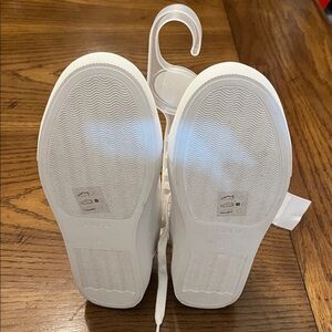 Crisp white sneakers with lace-up design. Perfect for any casual outfit.