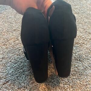 American Rag Black Block Heels w/ Ankle Straps in women’s Size 7 WIDE. High heels in very good used condition with minimal signs of wear. I’m not sure that they have ever even been worn. Please see close-up pictures for condition details & heel measurement. Open toe. Soft suede. Holiday party shoes. New Year's Eve. Christmas. Date night. Girls night out.