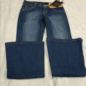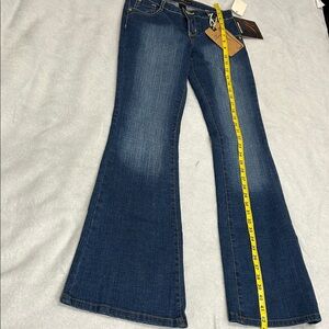 Stylish dark blue jeans with a flattering flare. Perfect for any occasion.