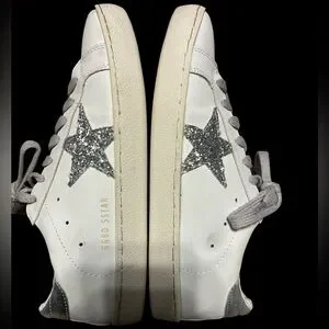 Step out in style with Golden GGBD women's sneakers, featuring a chic white design accented by silver star details. Perfect for casual outings, these sneakers offer both comfort and flair. Gray laces silver on heel So cute! Pre loved! Lots of life left. In good condition. A few scuffs from normal wear but that is all. SIZE 40. Adorable!!! Smoke free home ⭐️