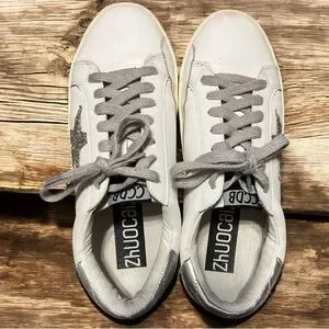 Zhuocaizi Golden GGBD SSTAR Women's White and Silver Star Sneakers
