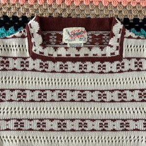 1960s 70s Nordic Fair Isle Floral Rose Printed Pullover Boho Bohemian