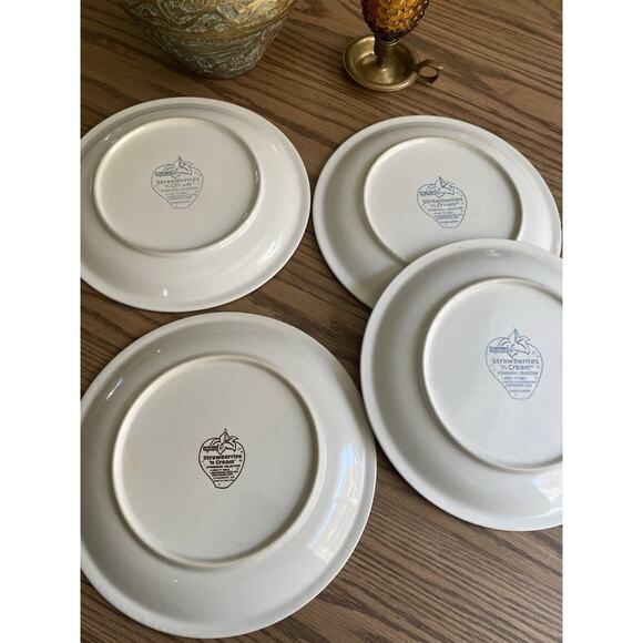 Vintage Sheffield Strawberries N Cream Stoneware Dinner Plates 10 1/2” Set Of 4