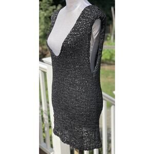 Free People Billie Black Vegan Leather Crocheted Tunic Minidress Deep Vee Sz S