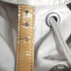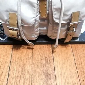 you can never go wrong with a backpack!! this PRADA nylon white and silver hardware..accented with almost "spicy mustard "colored pante buckles straps 🤭..straps are adjustable. her interior is immaculate and as for exterior she only has some minor call outs on her buckles from use (last 3 pics)...any questions just message me..happy poshing