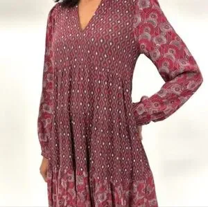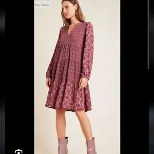 Anthropologie Maeve Patterned Long Sleeve Dress Size Large