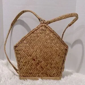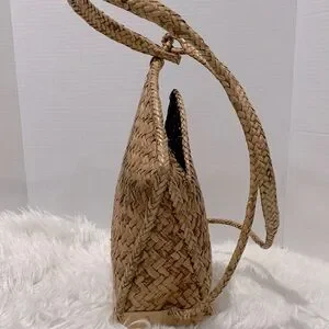Elevate your style with this chic woven backpack. Its versatile tan color complements any outfit, making it a unique accessory.