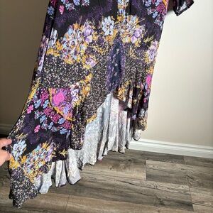 Absolutely stunning rayon dress with vibrant purple and pink prints! Florals combined with paisleys makes this appear almost like patchwork!