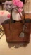 Chic Tory Burch tote in tan leather. Features elegant design with a stylish tag accent.