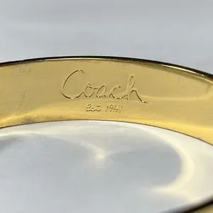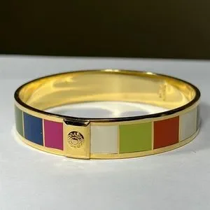 Excellent condition Coach Legacy Stripe Bangle Bracelet. Multicolor enamel colored stripes on gold tone. Measures 2 1/2” across. Minimal signs of being worn. See all pictures for visual details.