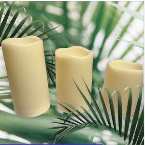 Enhance your decor with this beautiful trio of ivory LED flameless candles. Ideal for adding a cozy glow to any room.