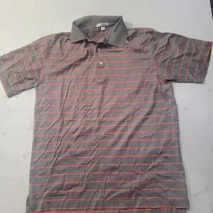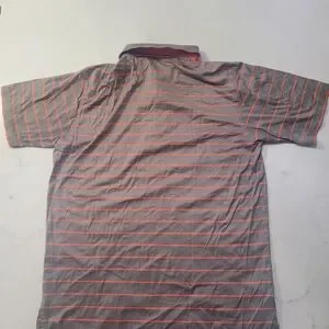 Elegant gray polo featuring vibrant orange stripes. Ideal for casual outings.