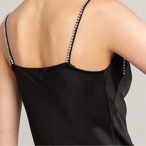 Chic black mini dress with elegant straps. Ideal for a night out.