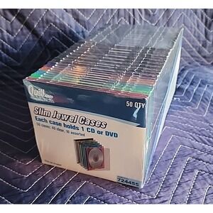 Keep your disc collection neat, protected, and easy to organize with this NEW 50-Pack of Quill 5mm Slim Jewel Cases — perfect for storing CDs or DVDs in a sleek, space-saving format.