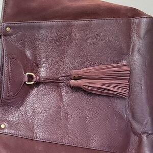 Authentic Frye Clara tote bag in deep wine burgundy. Made of 100% leather and suede. The inside is very clean, with no damage inside or out. Includes a dust bag (not pictured).
